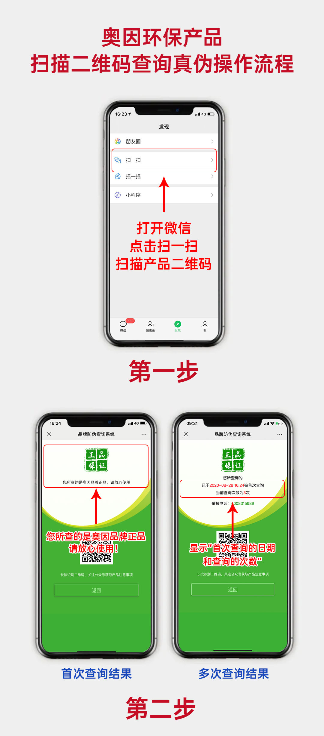 打開微信“掃一掃”,掃描產(chǎn)品防偽二維碼,即可查詢真?zhèn)巍?/span>